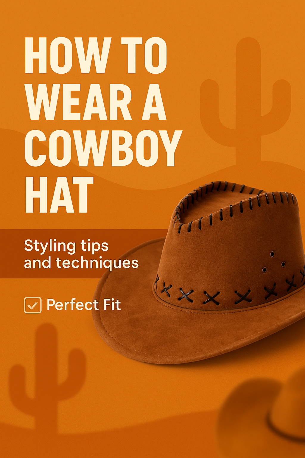 Informative graphic showcasing styling tips for wearing a cowboy hat. The design features a warm color palette and a focus on the hat's texture, perfect for fashion enthusiasts.
