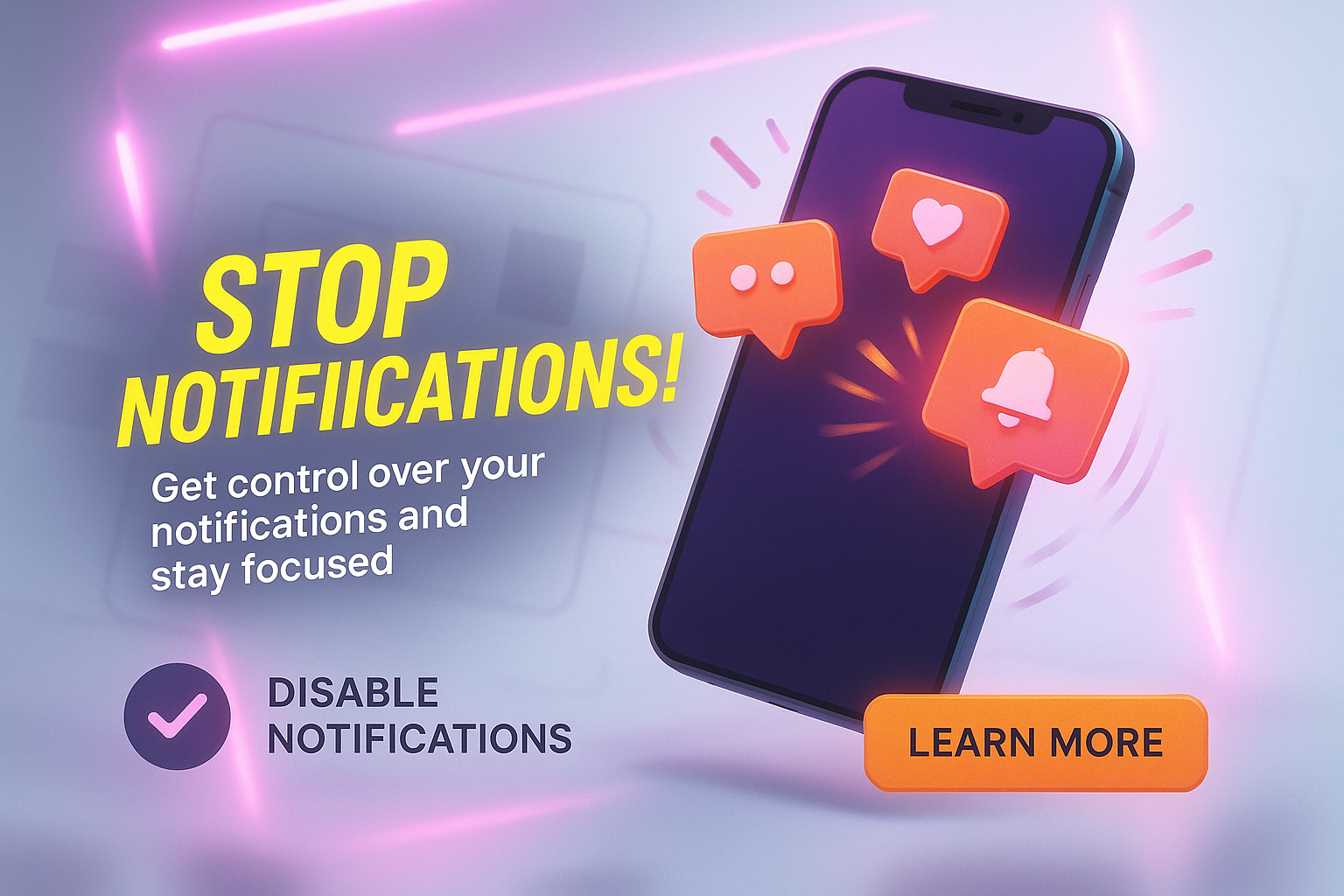 Engaging promotional graphic showcasing a mobile phone with notification icons, designed to promote a notification management app. Ideal for digital marketing.