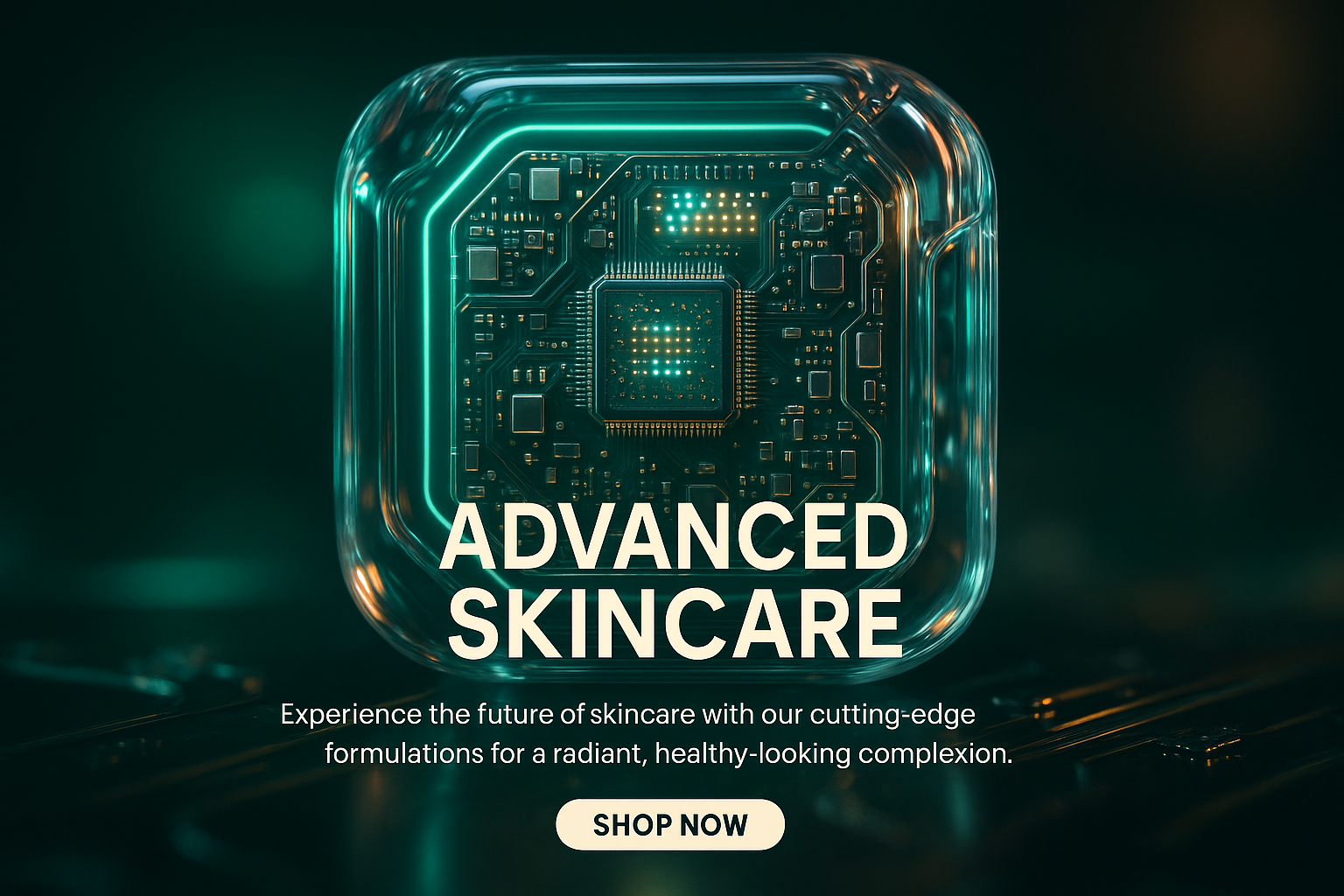 /Collection: /by davooda/Type: PNG/A hyperrealistic image showcasing an advanced skincare product inside a glass-like container, illuminated with neon accents. The composition features intricate technology elements, emphasizing a radiant, healthy complexion.
