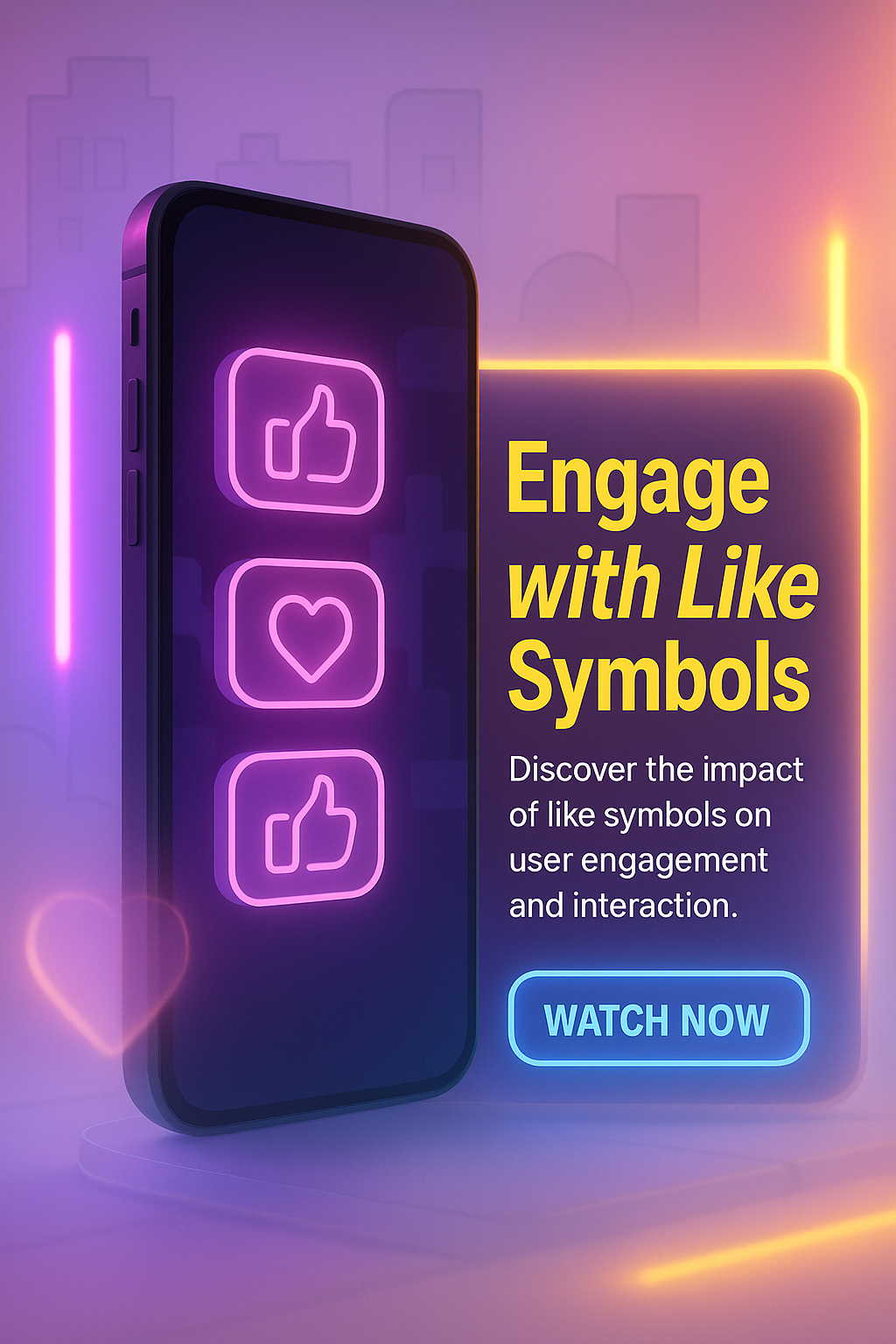 /Collection: /by davooda/Type: PNG/A visually appealing promotional graphic focused on user engagement with like symbols, featuring vibrant neon colors and a modern design, ideal for social media marketing.