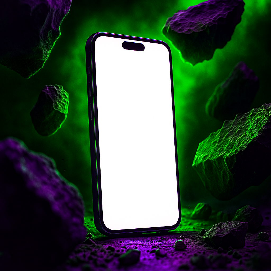 Futuristic Smartphone Mockup with Floating Rocks