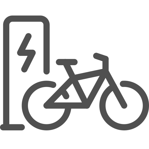 outline simple icon: bicycle, charging station, cycling infrastructure, ebike, electric bike