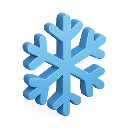 Stylized 3D blue snowflake icon featuring a rounded design, ideal for winter-themed graphics, seasonal promotions, or holiday-related content.