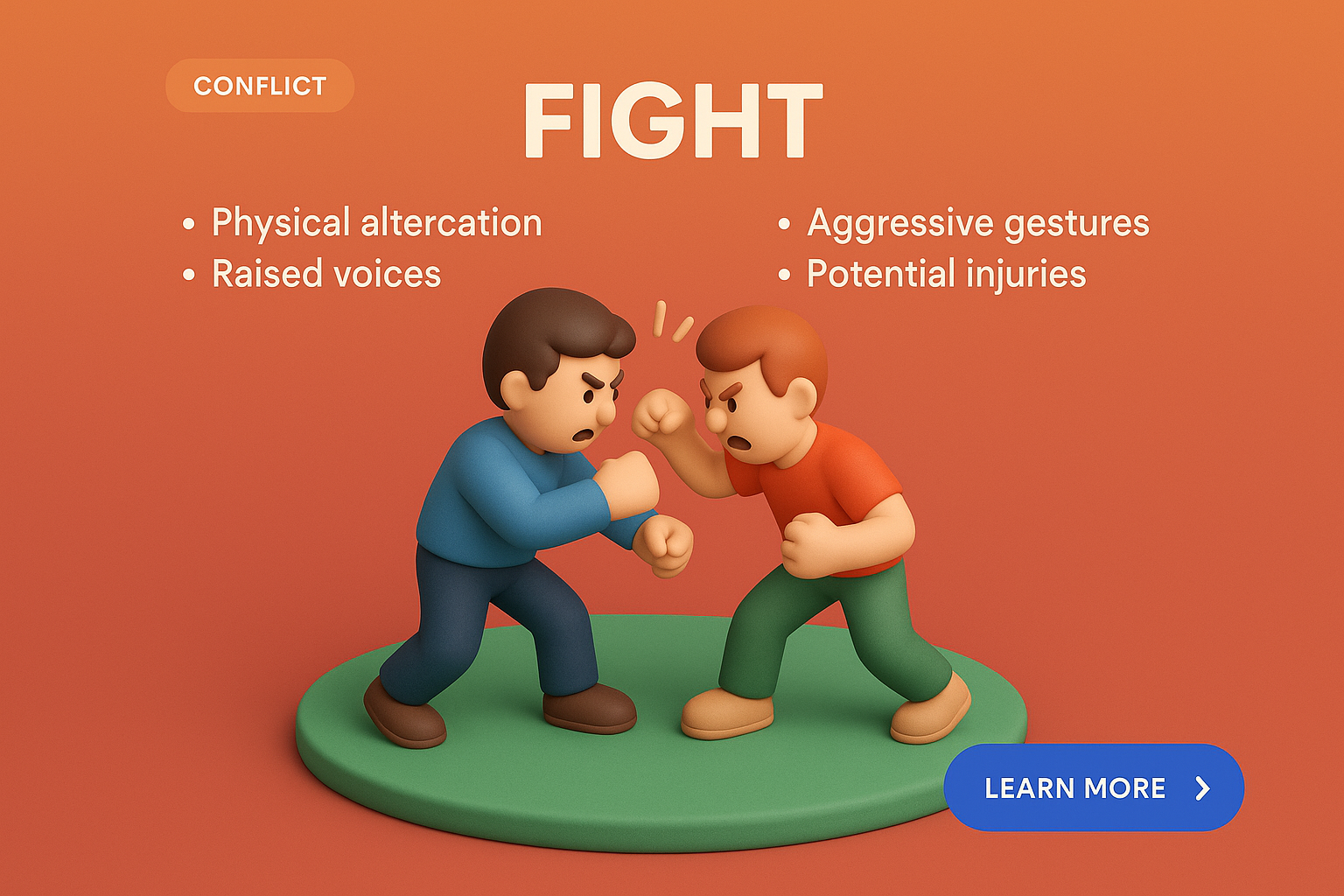 /Collection: /by davooda/Type: PNG/A vibrant 3D scene depicting two small figures engaged in a conflict, showcasing aggressive gestures and raised voices. Text elements convey the theme of the fight.