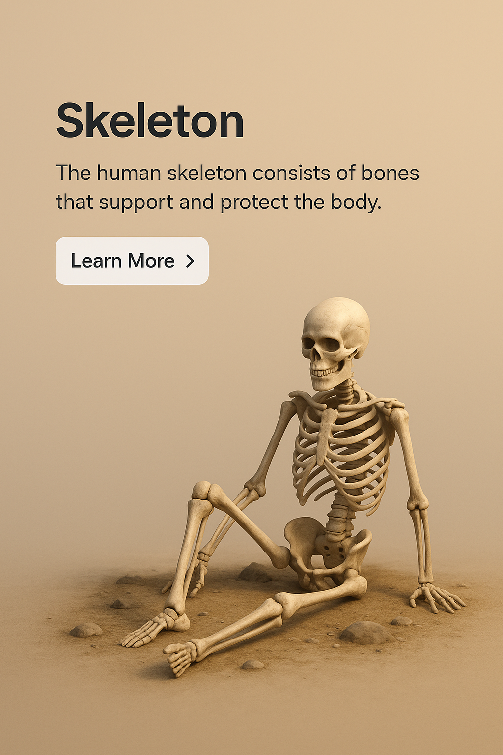 /Collection: /by davooda/Type: PNG/A realistic 3D depiction of a skeleton sitting in a simple environment. The background features a smooth gradient transitioning to a solid color, enhancing the focus on the skeletal structure.