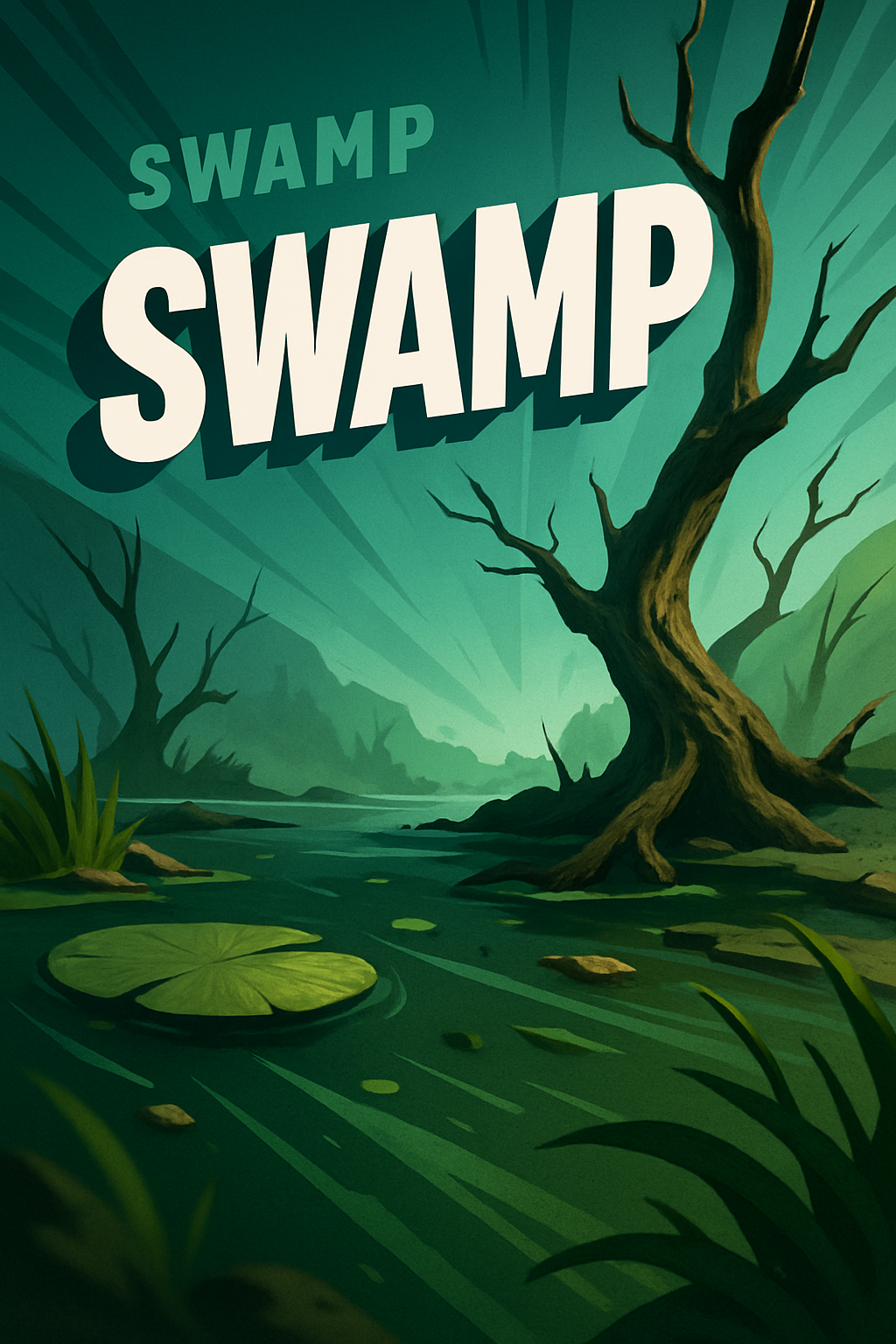 Dynamic Illustration of a Swamp Scene with Lush Vegetation
