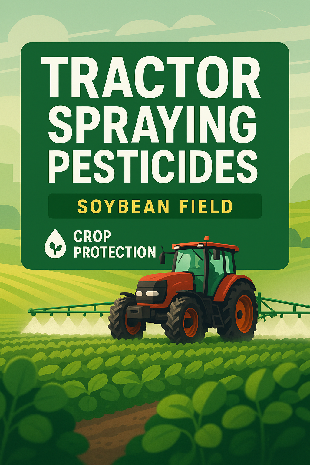 Illustrative Graphic of Tractor Spraying Pesticides in Soybean Field