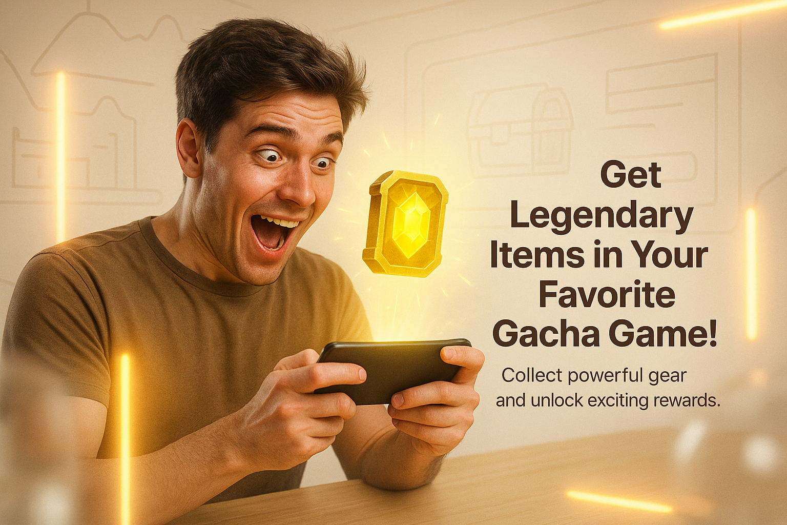 Exciting Mobile Gaming Promotion Featuring Enthusiastic Player