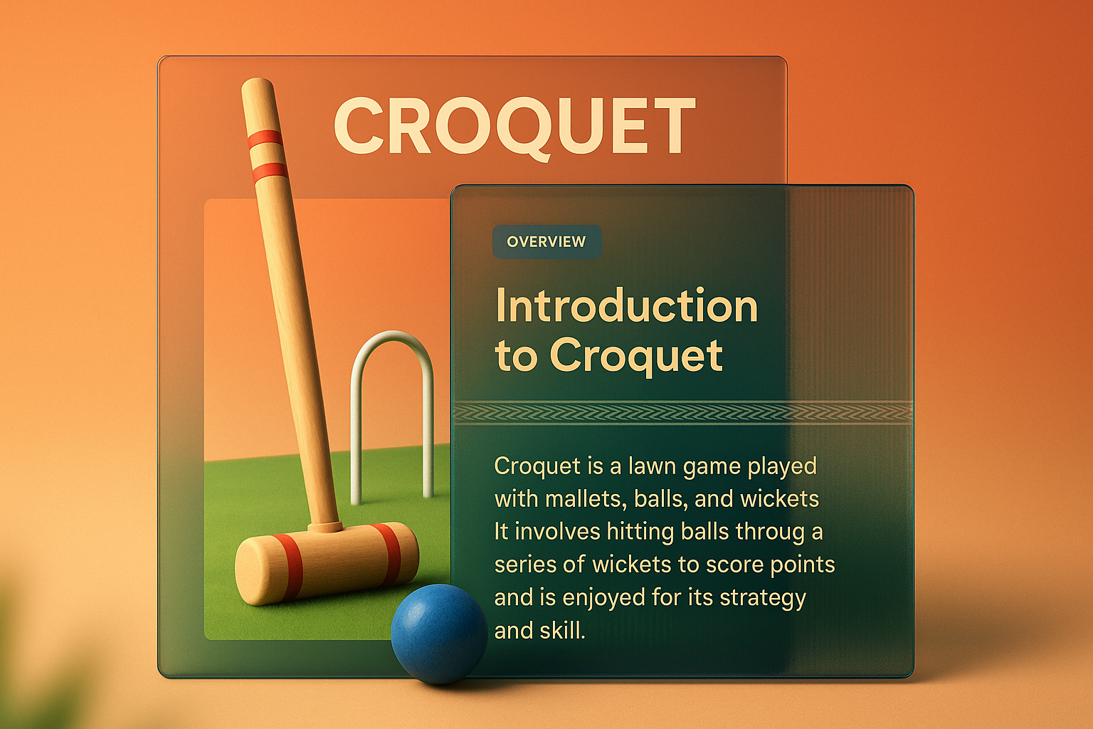 3D Croquet Illustration with Overlay Text and Design Elements
