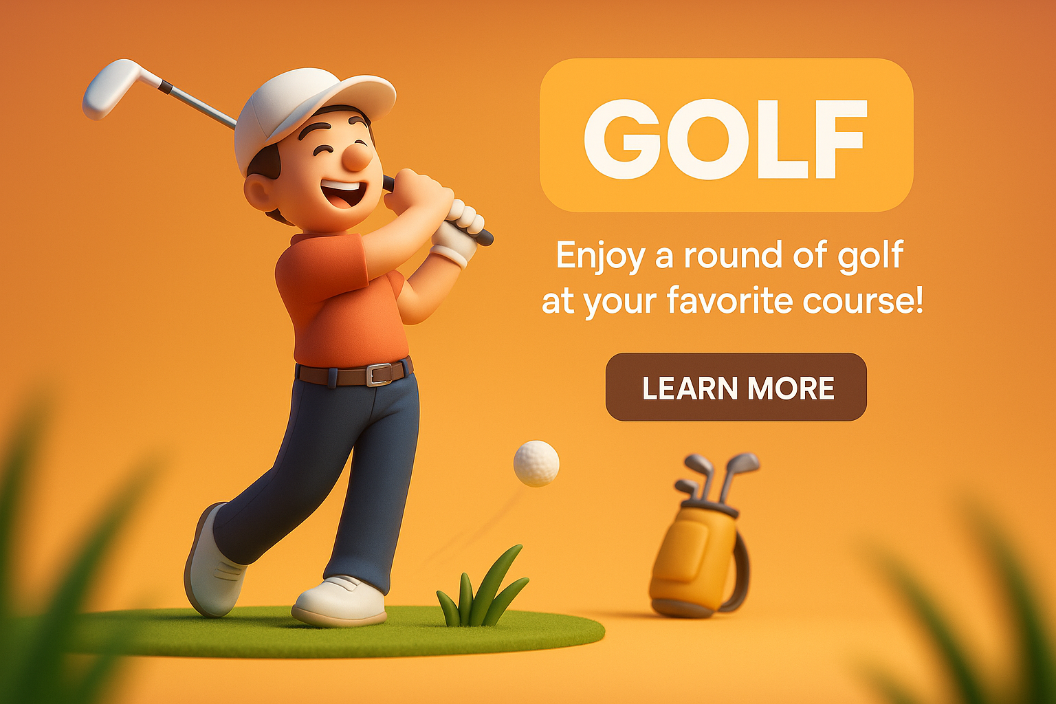 3D Cartoon Golf Character Promotional Graphic