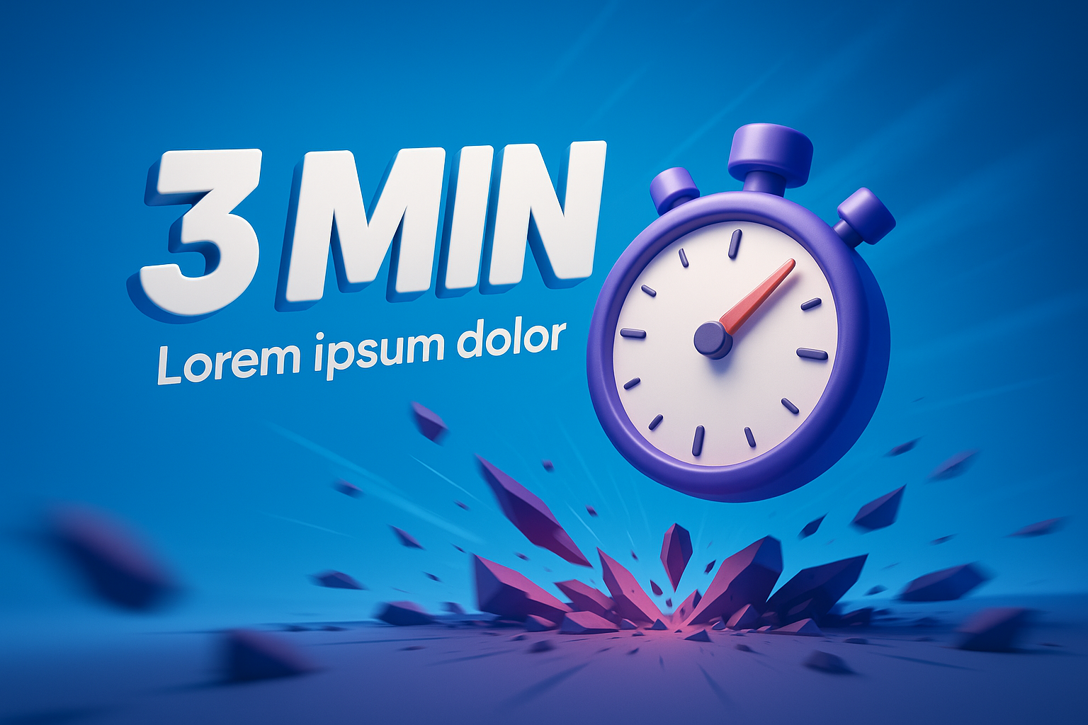 A vibrant graphic featuring a stopwatch representing 3 minutes. The design is playful and modern, suitable for social media or promotional content.