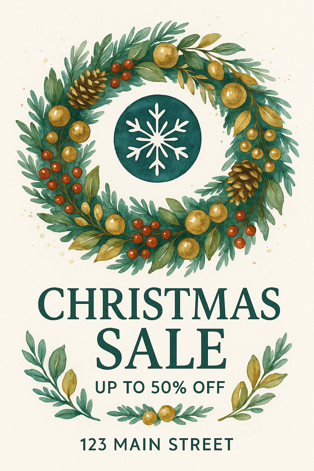 Festive Christmas Sale Promotion with Elegant Wreath Design