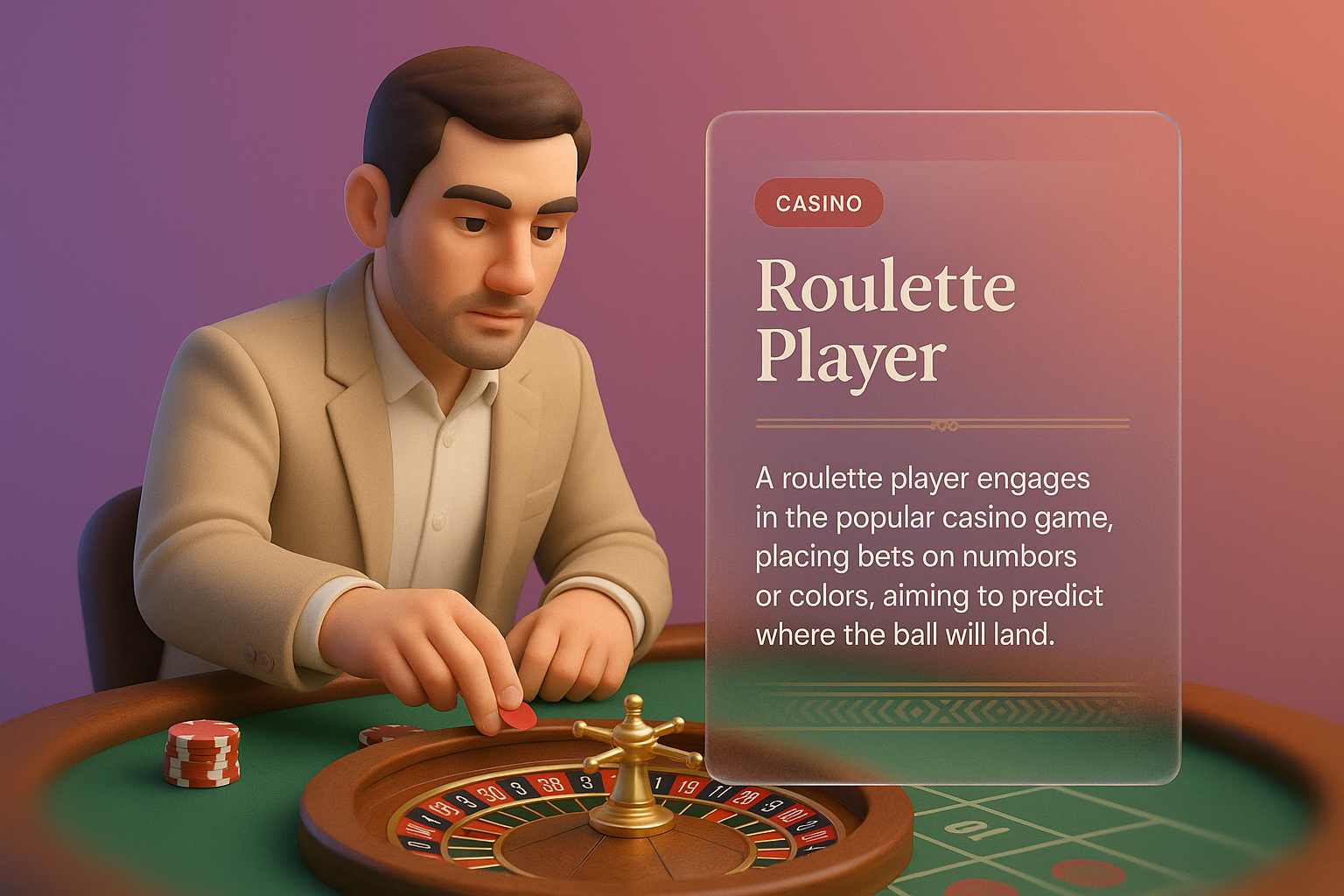 3D Roulette Player Illustration with Stylish Info Block