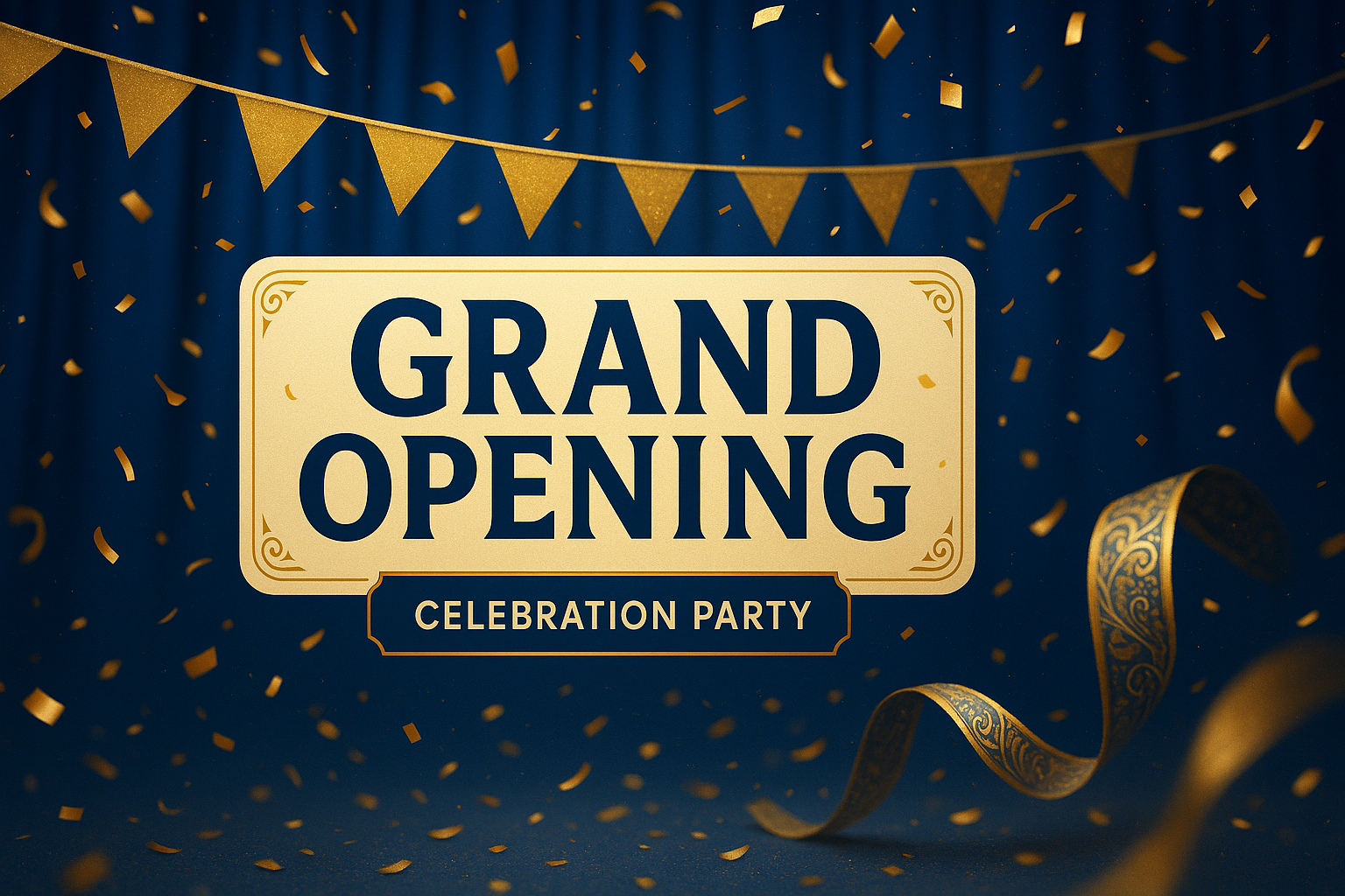 Elegant Grand Opening Celebration Banner with Confetti