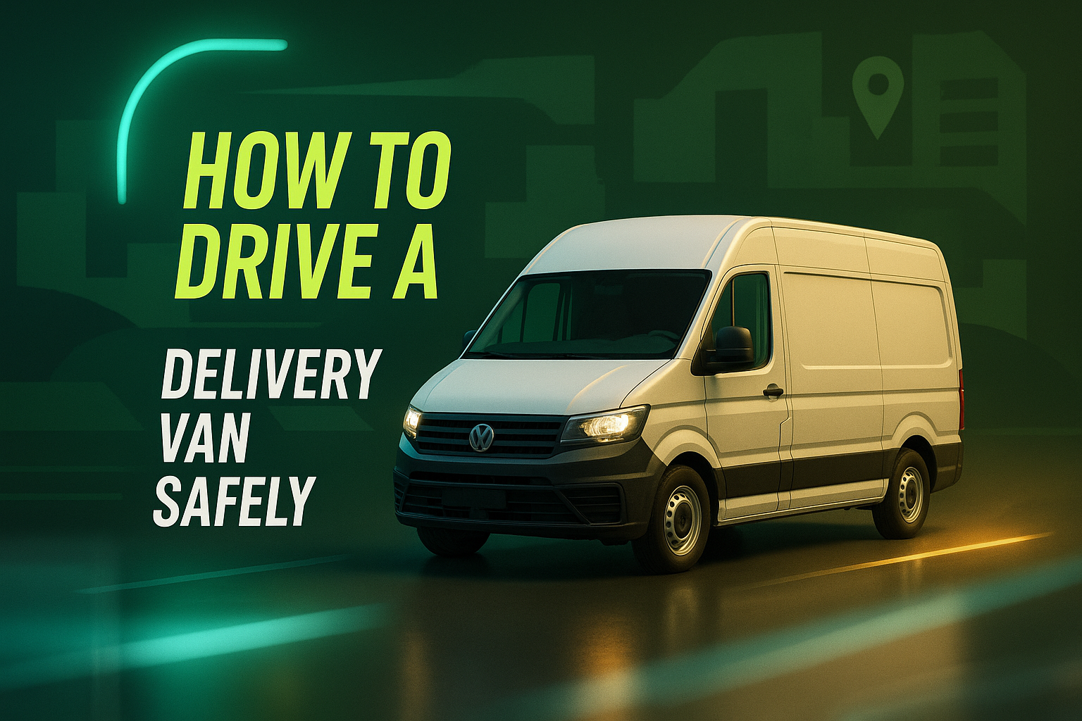 Informative graphic featuring a delivery van with a modern design aimed at educating drivers on safety protocols. Ideal for training materials or online tutorials.
