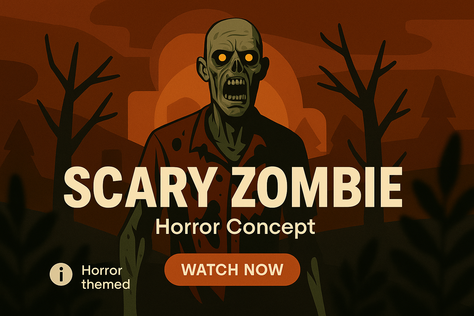 /Collection: /by davooda/Type: PNG/A striking horror-themed graphic featuring a scary zombie character, designed for promotional use in entertainment or gaming. The dark color palette and eerie atmosphere enhance its appeal.