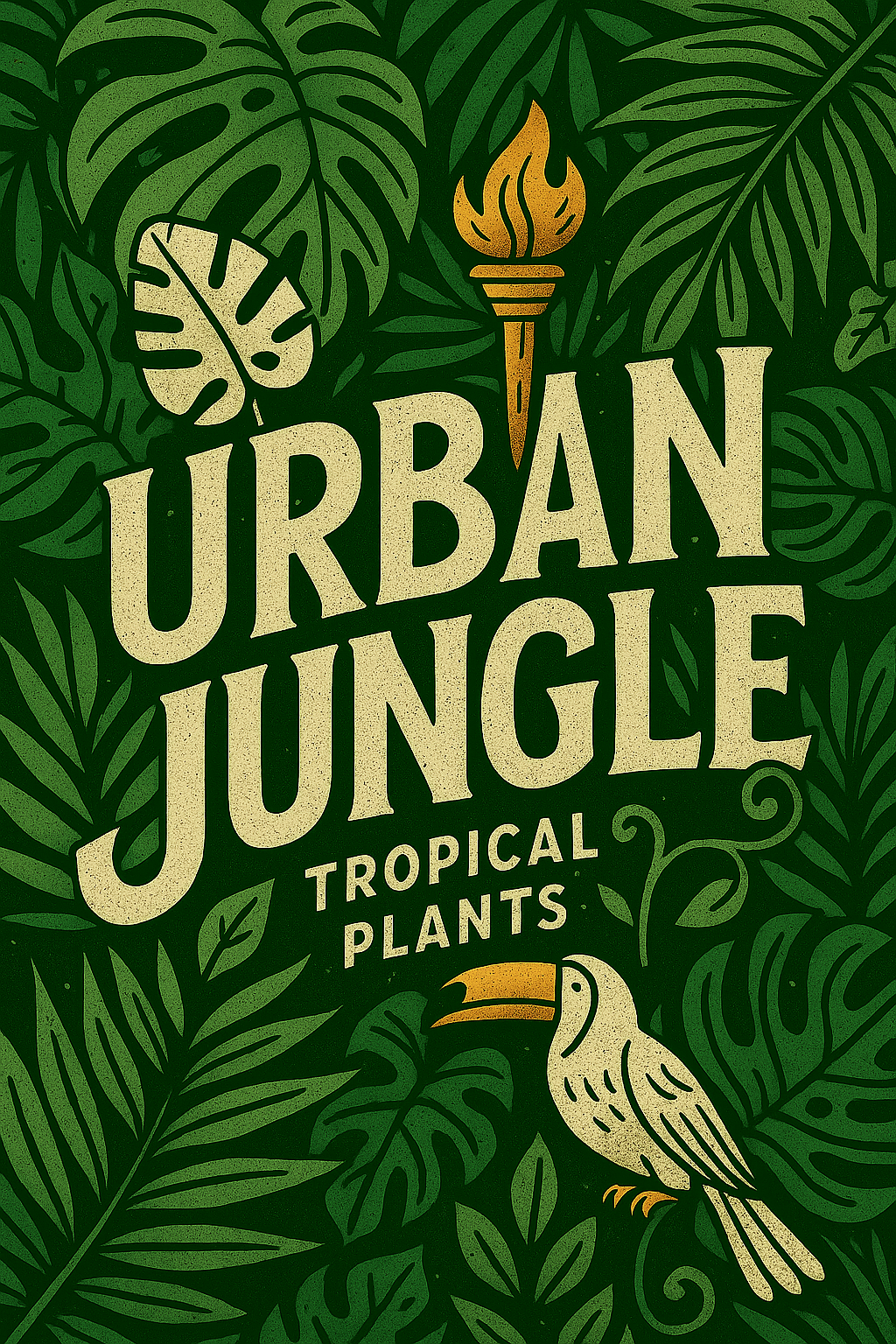 Vibrant Tropical Plants Illustration with Bold Typography