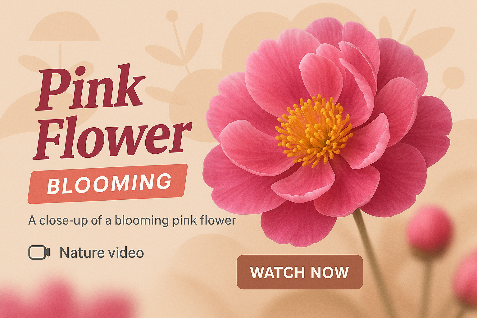 /Collection: /by davooda/Type: PNG/A visually appealing promotional graphic featuring a close-up of a blooming pink flower, designed for a nature video. The soft color palette and modern typography create an inviting atmosphere.