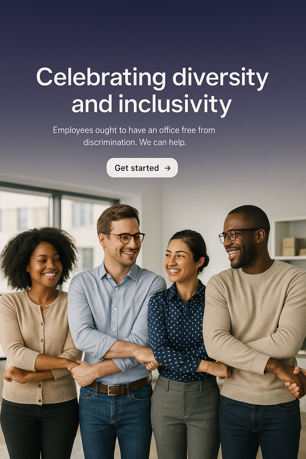/Collection: /by davooda/Type: PNG/An office scene showcasing a diverse group of employees linking arms, symbolizing unity and inclusivity. The backdrop features a gradient from dark to light, enhancing the theme of collaboration.