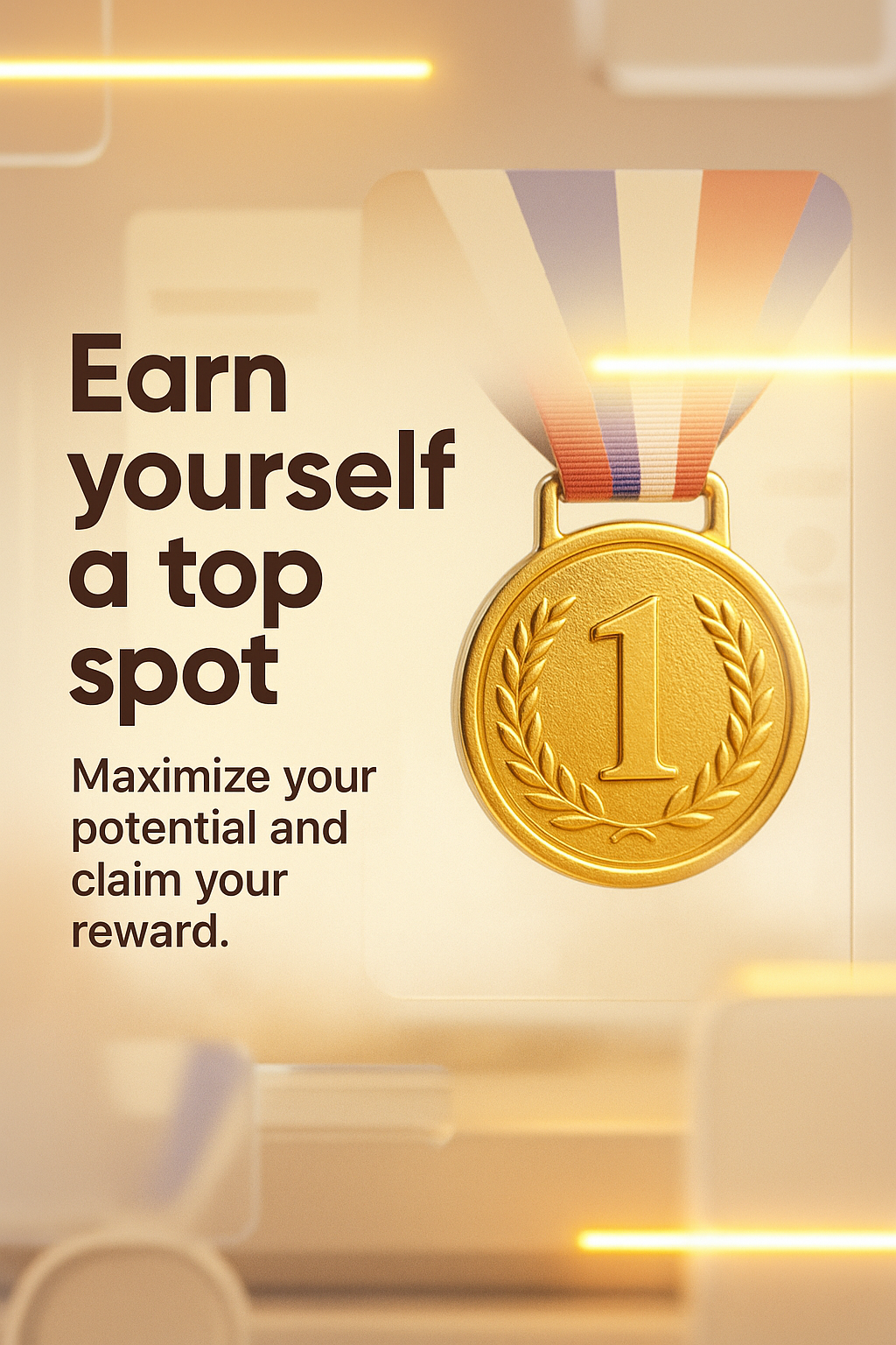 /Collection: /by davooda/Type: PNG/A vibrant carousel slide featuring a gold medal with a ribbon. The design uses neon lights and a soft glowing effect, with engaging text promoting potential rewards. The composition is layered for depth and clarity.
