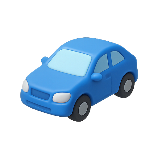 A vibrant 3D representation of a blue car emoji, featuring soft curves and a playful design ideal for digital communication and social media.
