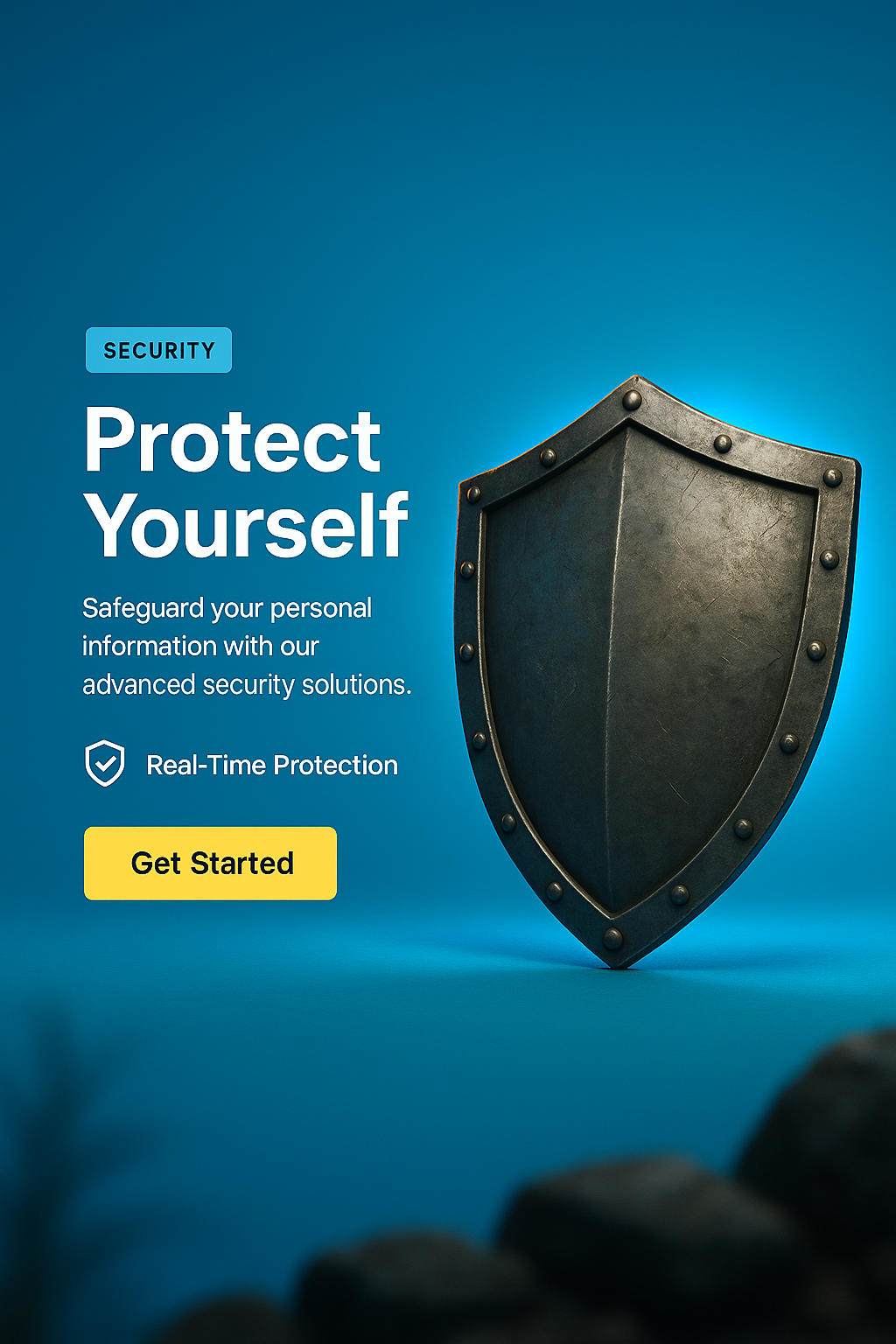 A digital banner promoting personal security services, featuring a shield emblem. The design is modern and sleek, ideal for digital marketing.