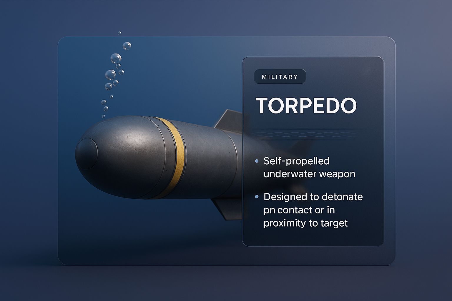 /Collection: /by davooda/Type: PNG/A detailed 3D illustration of a torpedo featuring a transparent overlay with key information. The design showcases a military underwater weapon with a sleek gradient background.