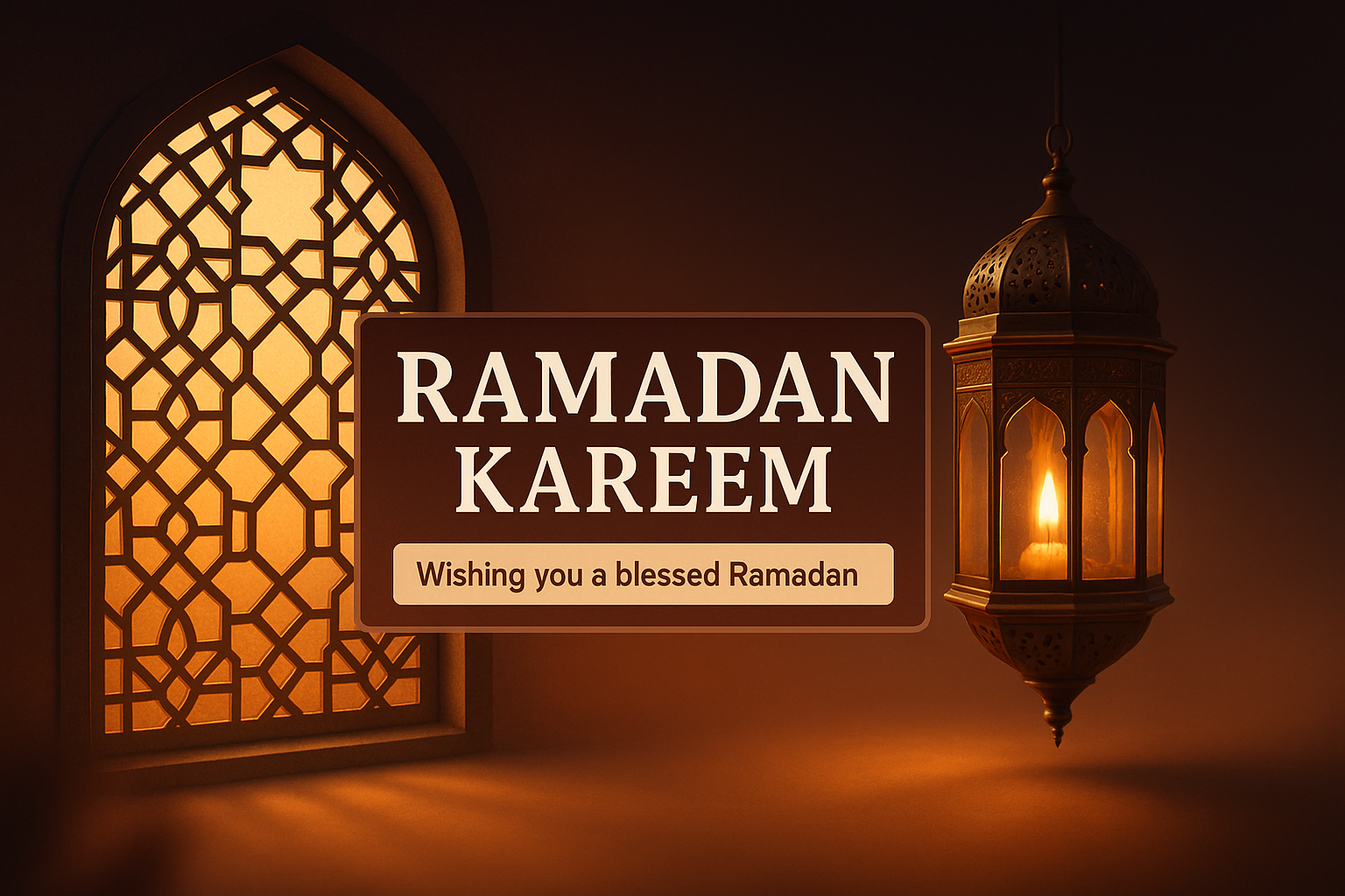 /Collection: /by davooda/Type: PNG/A beautifully designed greeting card for Ramadan featuring a decorative lantern and an ornate window. The warm lighting creates an inviting atmosphere, ideal for sharing festive wishes.