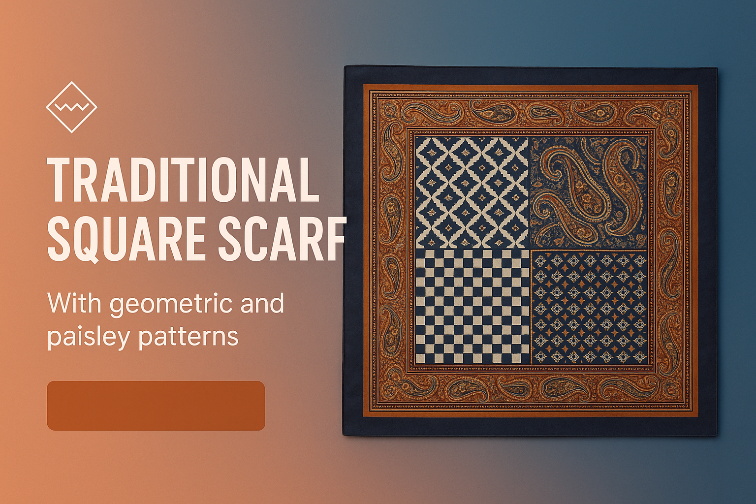 Traditional Square Scarf with Geometric and Paisley Patterns