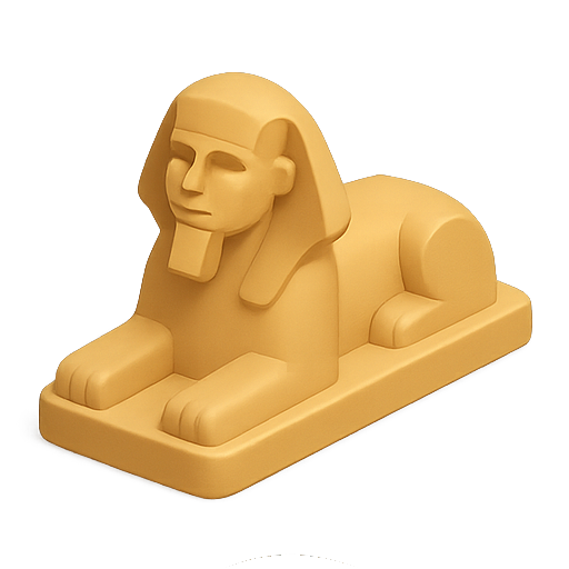 /Collection: /by davooda/Type: PNG/A modern, stylized representation of an Egyptian sphinx, featuring a simplistic design and warm color palette, suitable for decorative purposes or as an art piece.