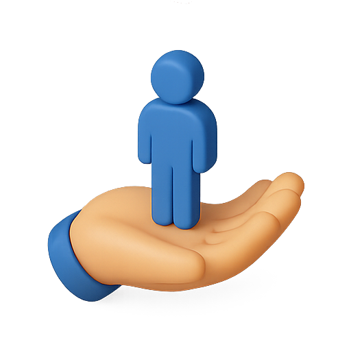 /Collection: /by davooda/Type: PNG/A visually striking 3D graphic depicting a hand holding a stylized human figure, symbolizing support and care. Ideal for illustrations in mental health, community services, or personal development.