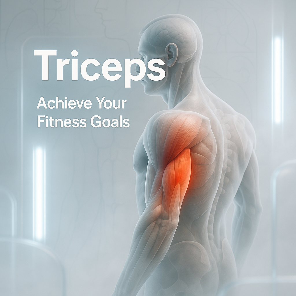 A modern anatomical illustration emphasizing the triceps muscle, designed for fitness enthusiasts. Ideal for educational content, fitness programs, or promotional materials.