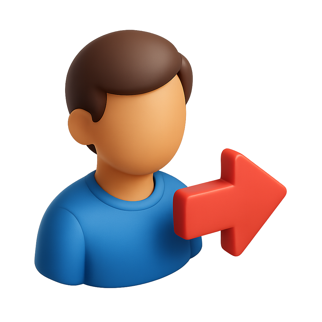 /Collection: /by davooda/Type: PNG/A stylized 3D male figure with a red arrow pointing outward. The figure is designed in a three-quarter isometric view, showcasing a smooth, volumetric look against a gradient background.