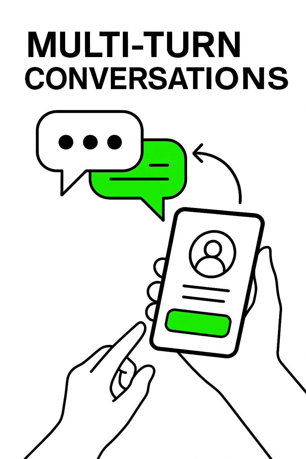 /Collection: /by davooda/Type: PNG/Stylized illustration depicting a smartphone interface for multi-turn conversations, featuring speech bubbles and user interaction, suitable for digital communication themes.