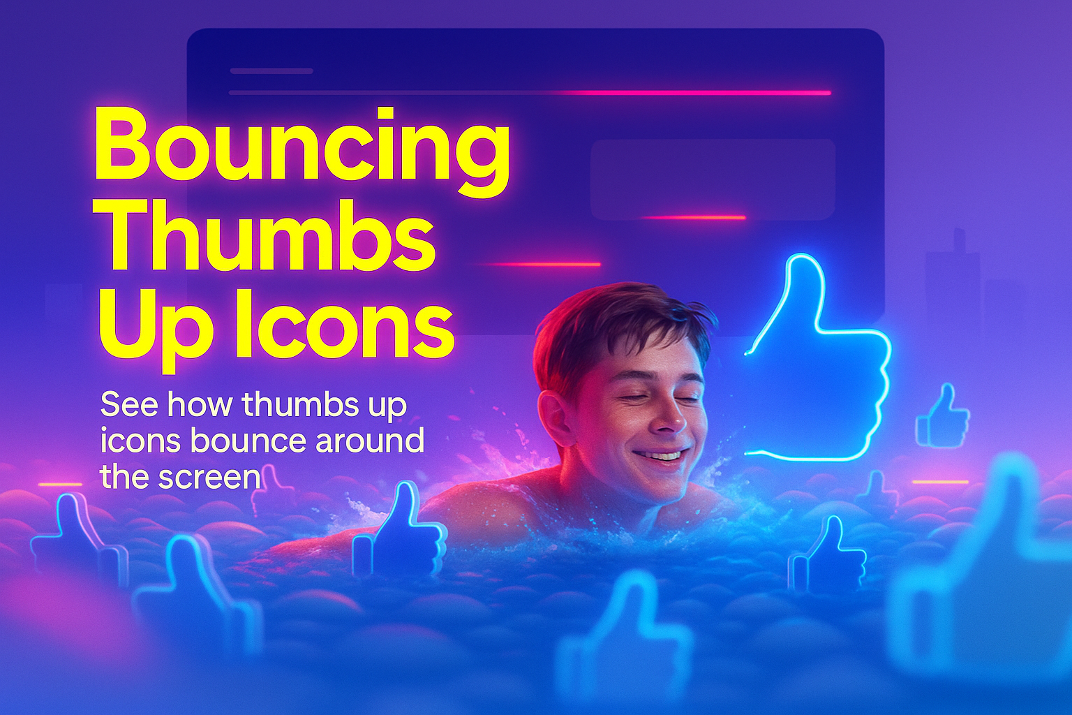 /Collection: /by davooda/Type: PNG/A colorful digital artwork showcasing a young person enjoying a playful interaction with bouncing thumbs up icons, ideal for social media or tech-related content.