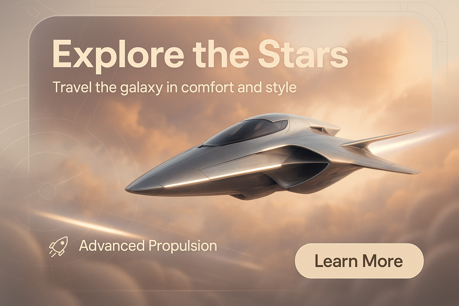 Visually striking promotional banner showcasing a sleek spacecraft against a celestial backdrop, designed to captivate audiences interested in advanced space travel technologies.