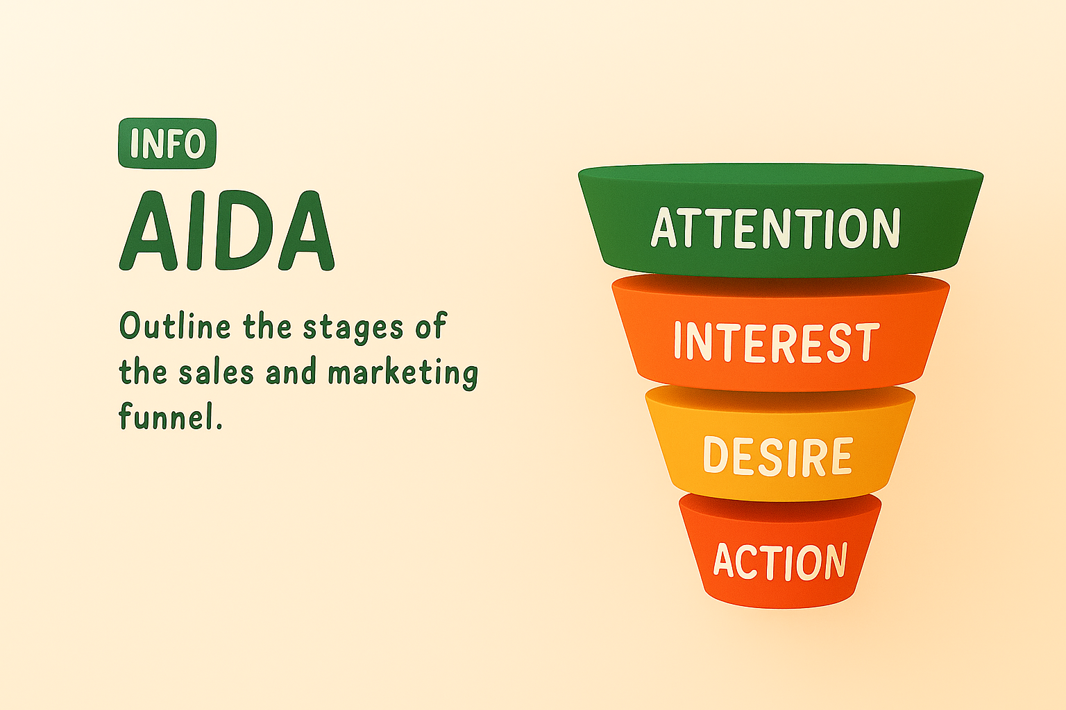 /Collection: /by davooda/Type: PNG/Colorful infographic showcasing the AIDA model (Attention, Interest, Desire, Action) with a modern design. Ideal for marketing presentations and educational content.