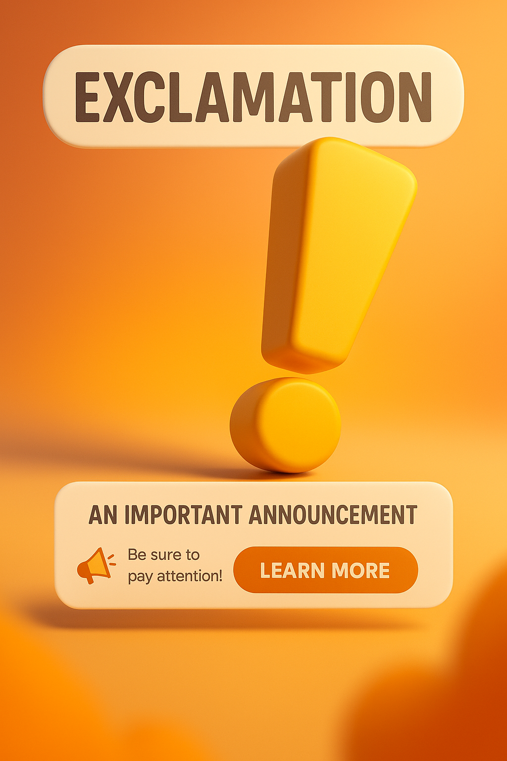 3D Exclamation Mark Design with Text and Graphics