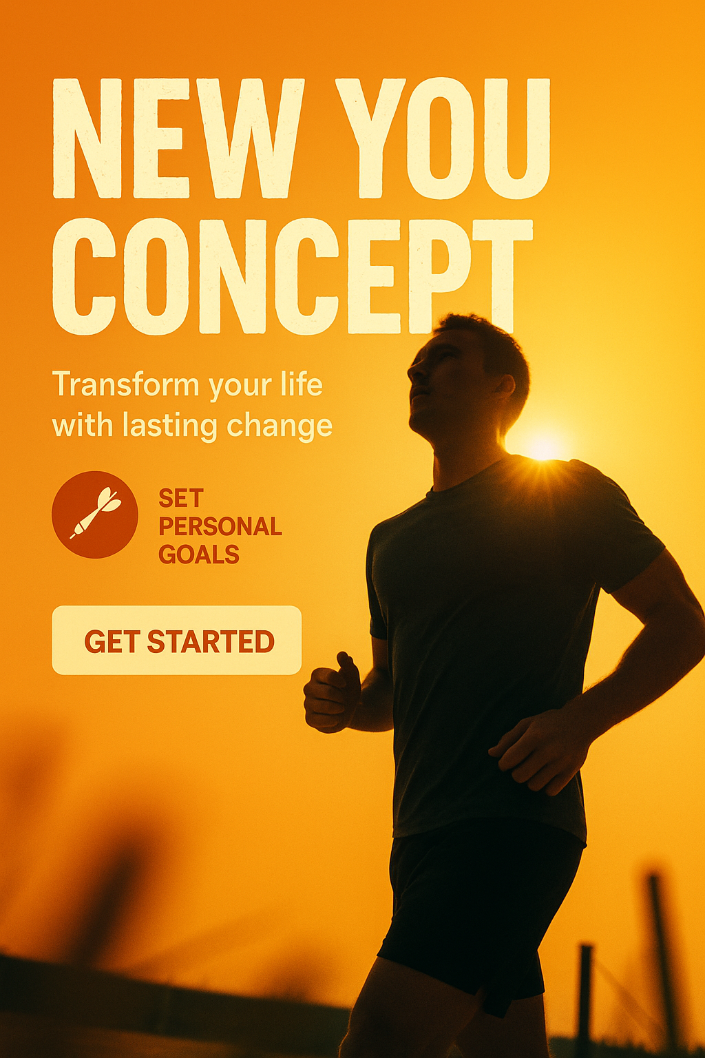 /Collection: /by davooda/Type: PNG/This motivational graphic features a silhouette of a runner against a vibrant sunset, promoting personal transformation and goal setting. Ideal for health and wellness campaigns.