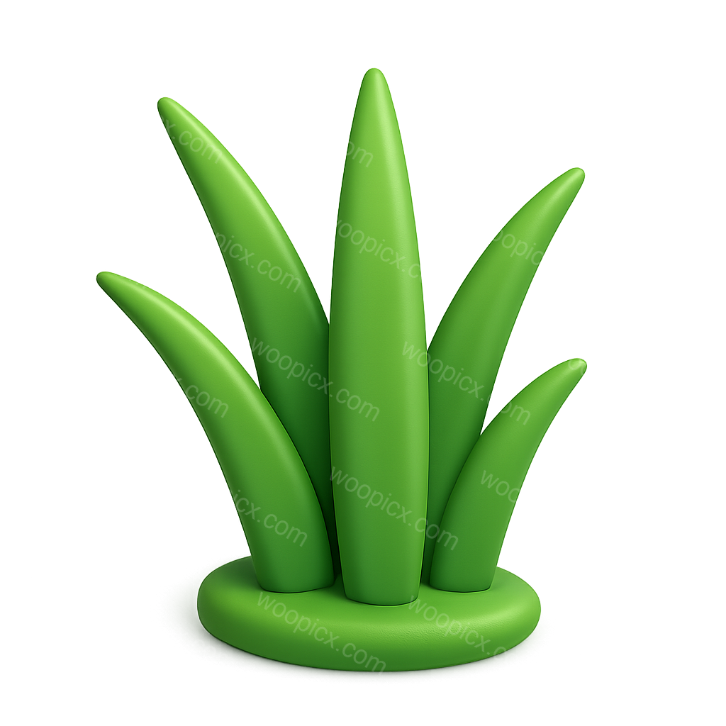 This image showcases a stylized 3D icon of green grass blades, presented in a three-quarter view with a smooth, isometric design. The vibrant color and glossy finish give it a modern look.