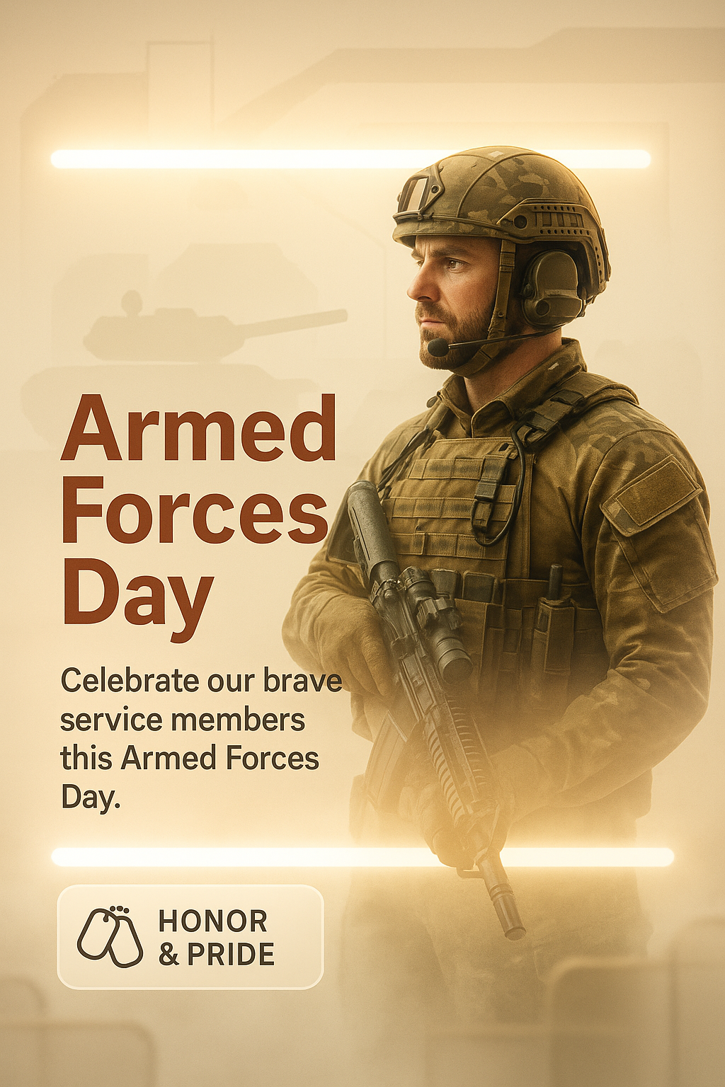 /Collection: /by davooda/Type: PNG/A tribute image highlighting Armed Forces Day, featuring a soldier in tactical gear. The design combines a respectful tone with modern aesthetics, suitable for commemorative events.