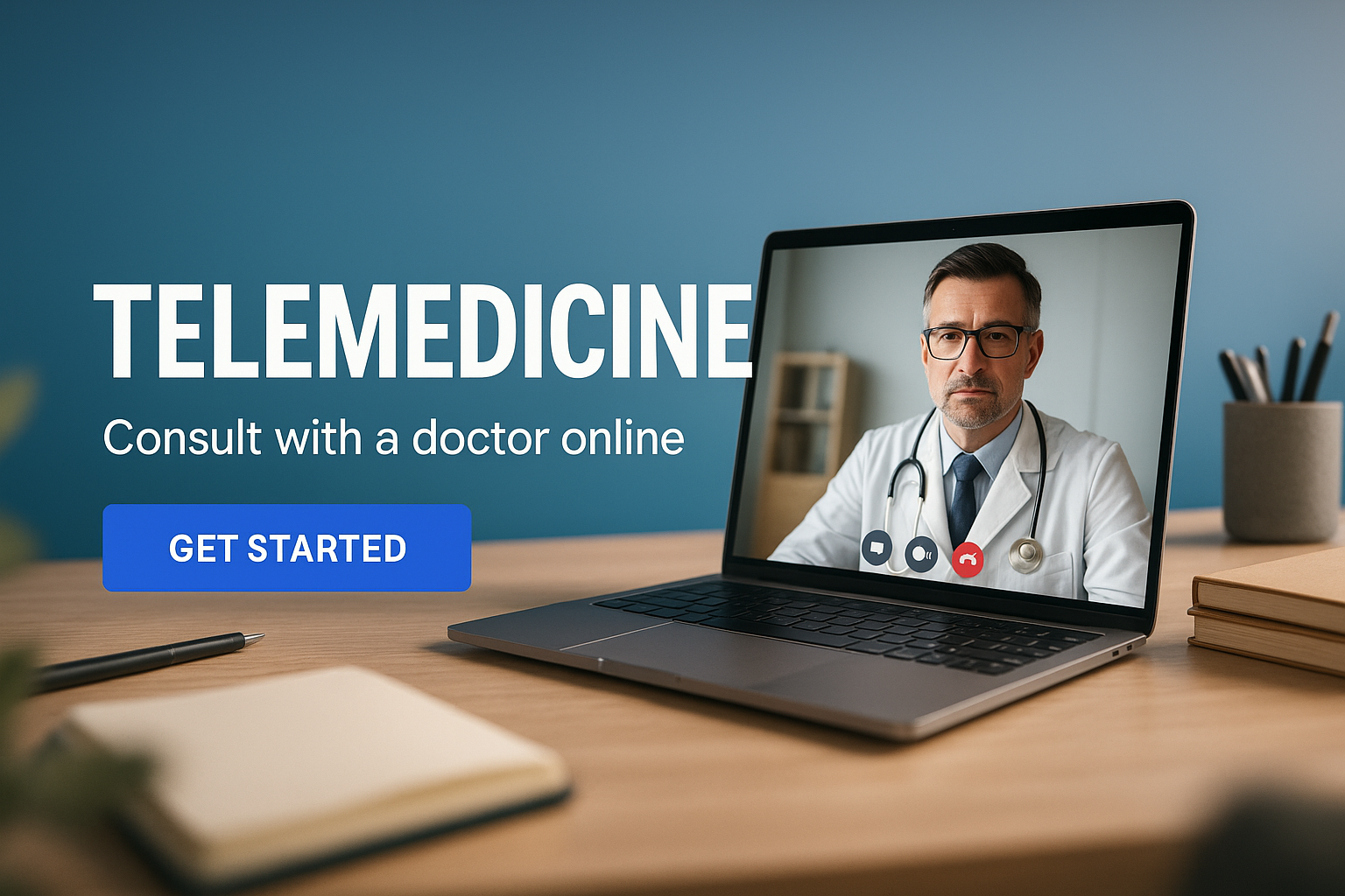 Telemedicine Promotional Graphic Featuring Online Consultation