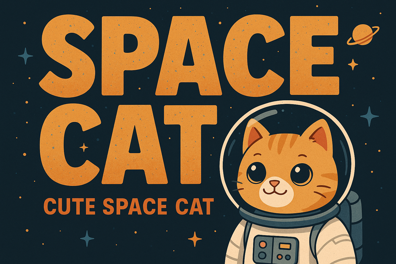 Adorable Space Cat Illustration with Bold Typography