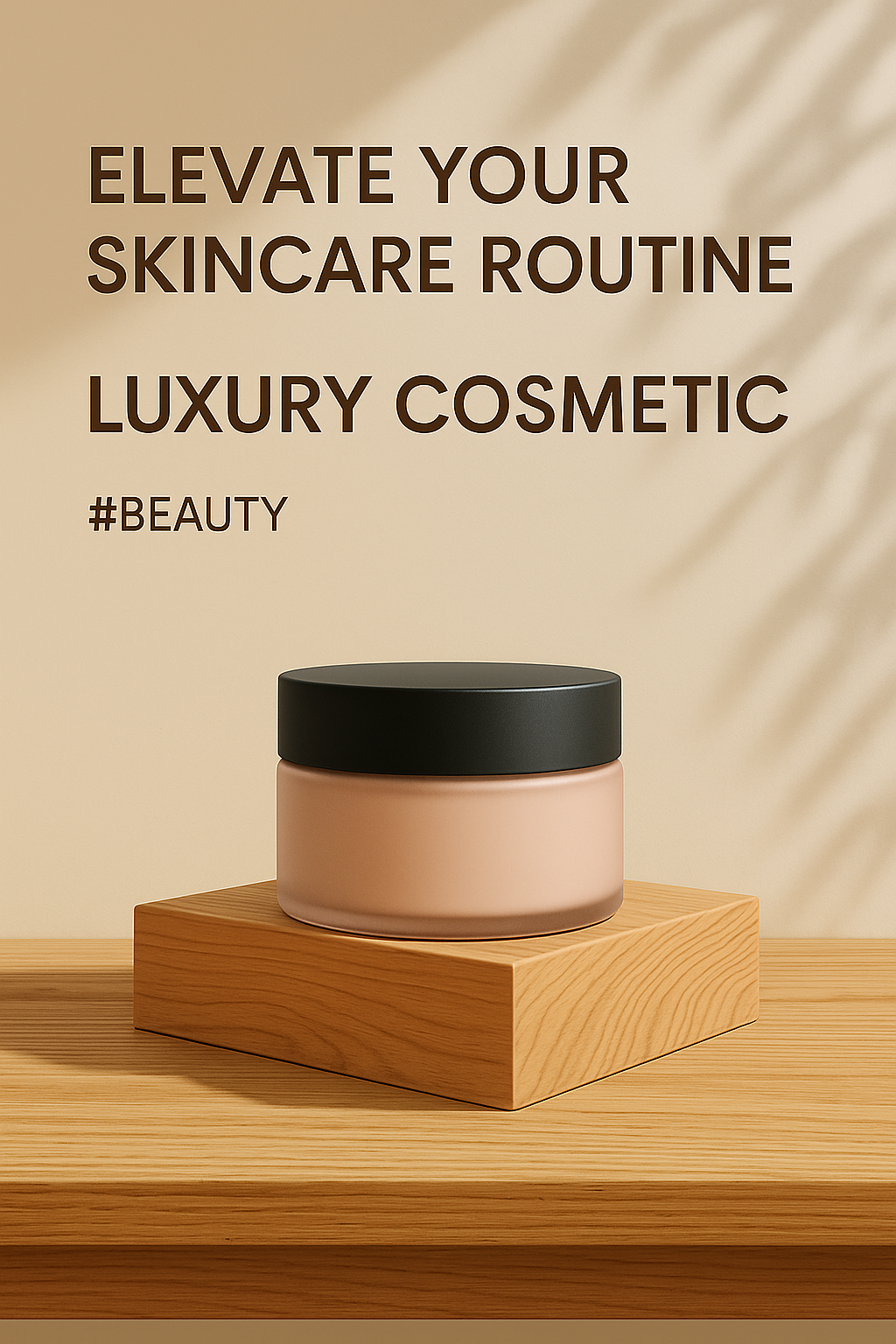 /Collection: /by davooda/Type: PNG/Stylish product display featuring a luxury skincare item on a wooden pedestal, designed for beauty branding. Ideal for social media marketing and promotional campaigns.