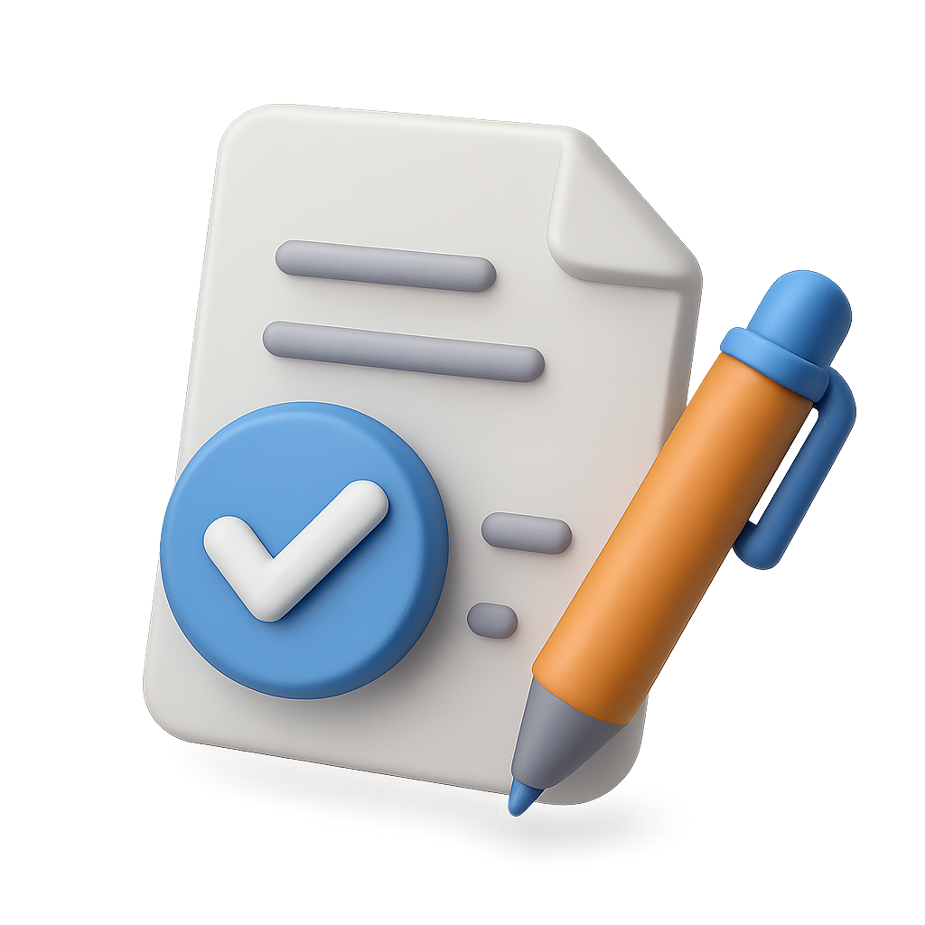 3D Icon of Document with Checkmark and Pen in Isometric View