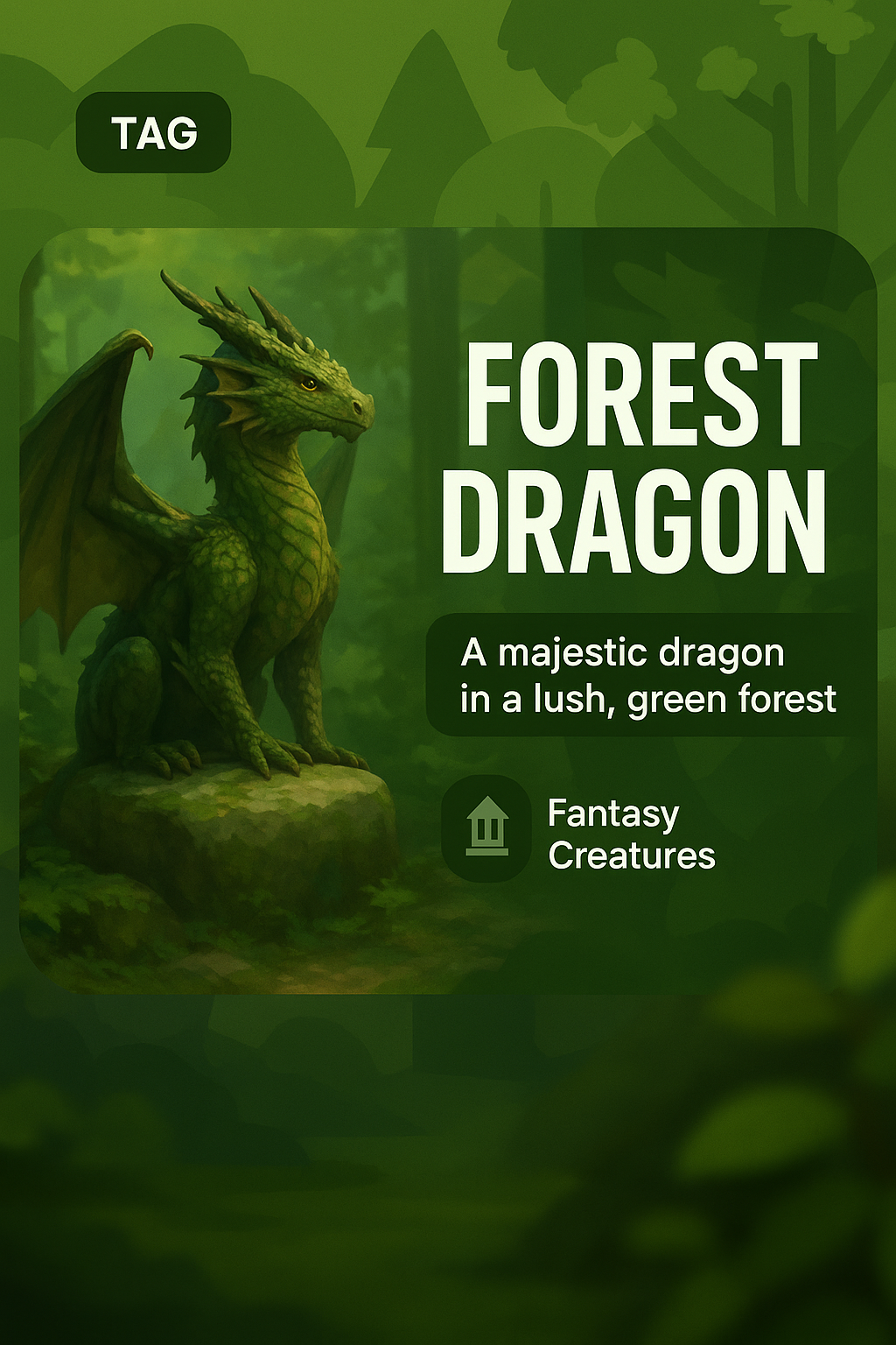 A captivating fantasy illustration featuring a majestic dragon in a lush green forest, ideal for fantasy-themed content and creative projects.