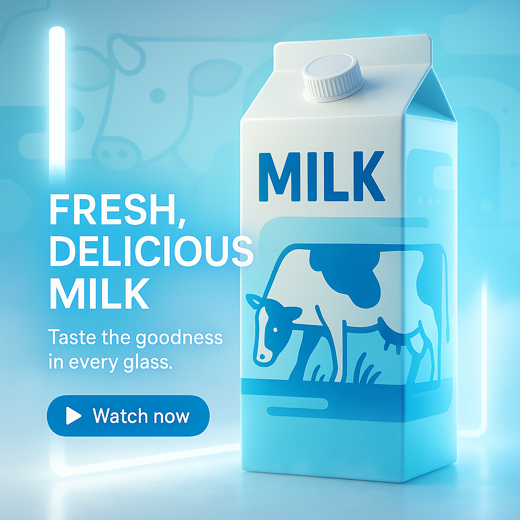 3D illustration of a milk carton featuring a cow design, emphasizing freshness and quality. Ideal for promotional content in food and beverage marketing.