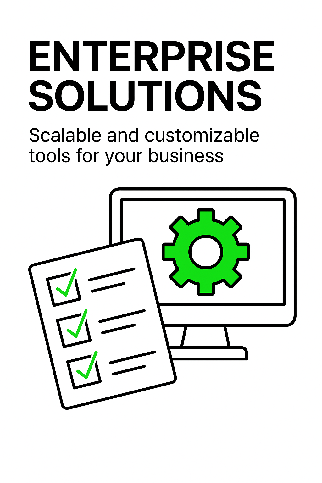 A clean and modern infographic illustrating enterprise solutions with a focus on scalability and customization, suitable for business presentations.