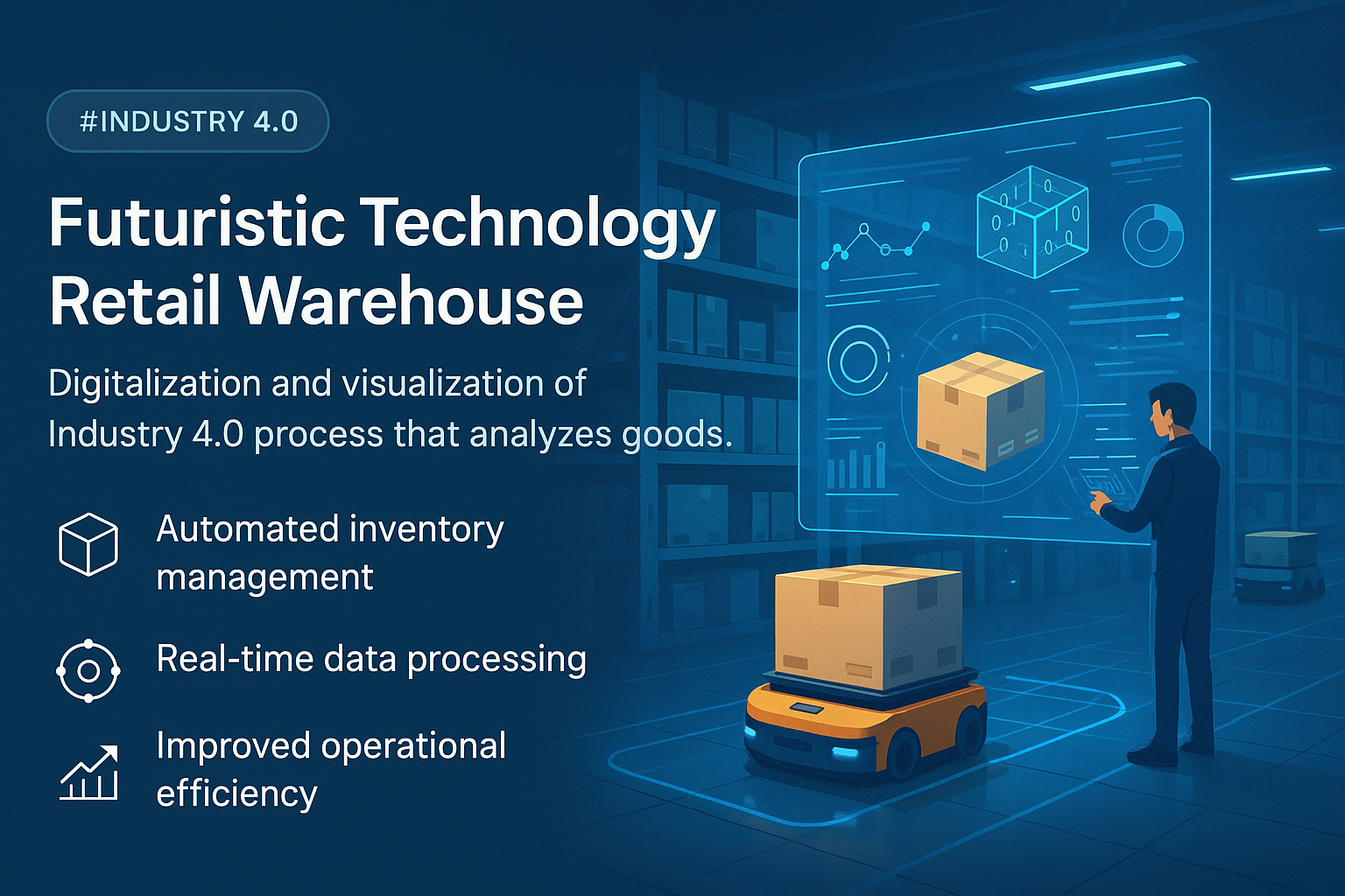 /Collection: /by davooda/Type: PNG/A digital illustration showcasing a futuristic retail warehouse with automated inventory and data processing features, ideal for industry-focused presentations or marketing.