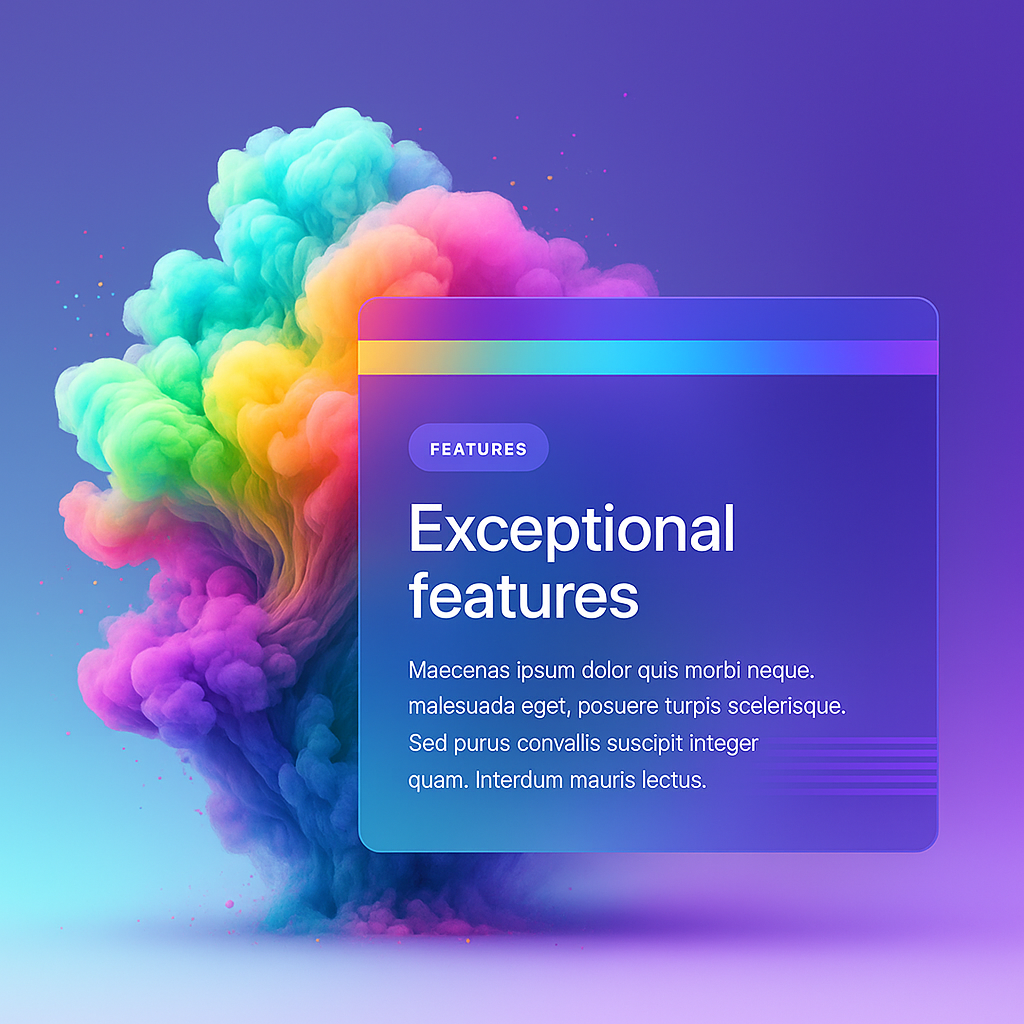 /Collection: /by davooda/Type: PNG/An abstract representation of a vibrant explosion of multicolored neon smoke. The 3D rendering features a smooth gradient background with a text overlay highlighting exceptional features, creating a captivating visual experience.